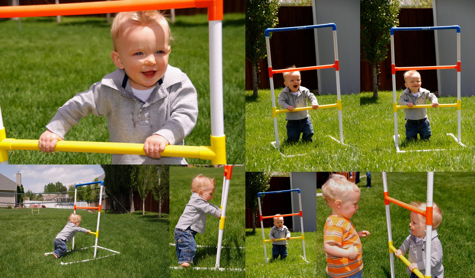 Jimmer is 11 months old today. He is doing great. He still likes to eat a lot (about 8 baby food jars a day) and still has no teeth. Lately he's learned how to go down the stairs on his belly (which is nice for me) and has not yet learned to like his carseat. At 12 months...we're turning that carseat around! Jimmer likes to shake and throw toys and fling them across the room and chase them. He has not learned to walk yet, but it will probably be sooner than later. He likes to walk with anything that will work as a walker. In the pictures above Jimmer decided he could push the ladder ball game as a walker around my parents' backyard. Monday, May 24, 2010